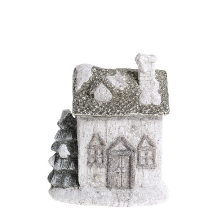Ett charmigt dekorationshus med inbyggda LED-stjärnor som sprider ett mjukt, varmt sken. Perfekt som stämningsfull detalj på fönsterbrädan, hyllan eller som del av en vinter- och juldekoration. Husets lysande stjärnor skapar en känsla av mys och magi som lyser upp hemmet under mörka kvällar.