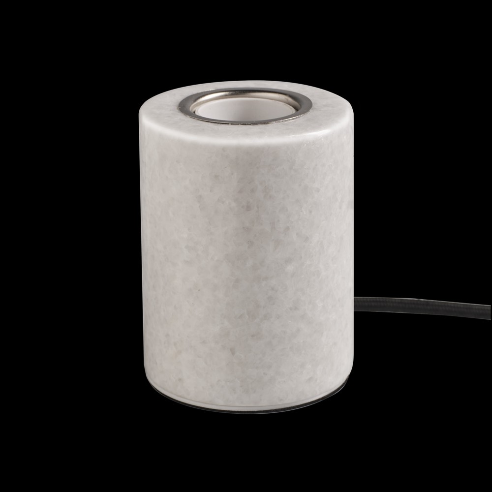 Bordslampa Marble i vit polerad marmor är en elegant kombination av naturlig tyngd och mjukt ljus. Den solida marmorfoten ger ett exklusivt och stabilt uttryck, medan den vita polerade ytan reflekterar ljuset på ett sofistikerat sätt. Varje lampa är unik tack vare marmorns naturliga ådring, vilket ger ett personligt och levande intryck i inredningen.